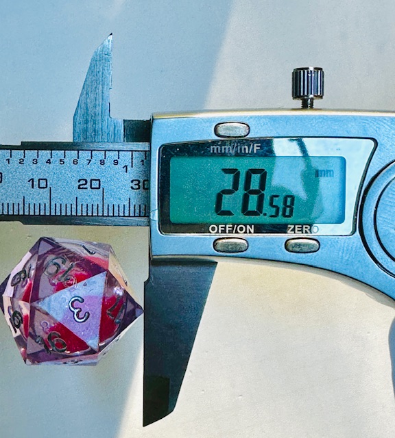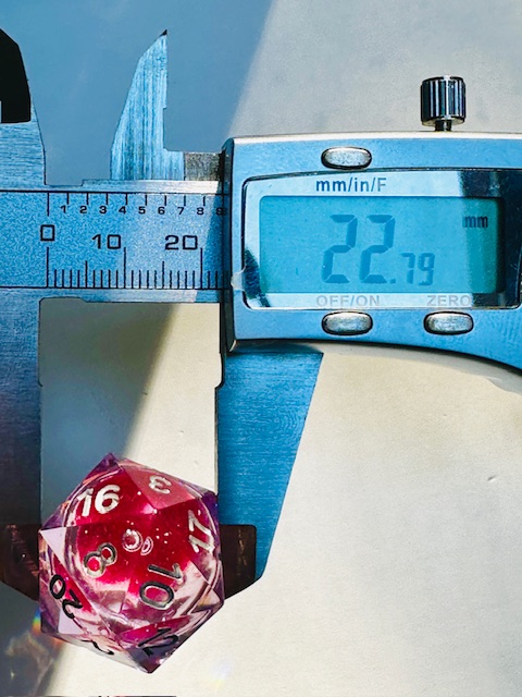 d20: (Face->Face) 22.8mm (Point->Point) 28.6mm