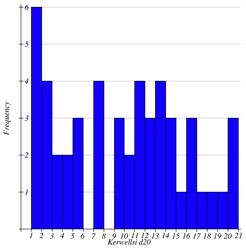 Kerwellsi d20: 2, 20, 2, 14, 7, 20, 13, 13, 1, 5, 1, 10, 3, 12, 10, 12, 5, 9, 7, 11, 3, 2, 15, 11, 16, 16, 19, 13, 1, 16, 4, 18, 7, 1, 14, 1, 20, 7, 5, 11, 9, 4, 1, 12, 13, 2, 17, 11, 9, 14