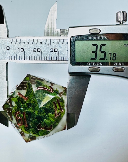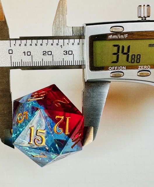 Beheld d20: (Face->Face) 35.12 mm (Point->Point) 43.95 mm
