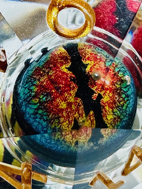 Dark Ring d20: Clear/red/black resin with a gold ring and floating eye