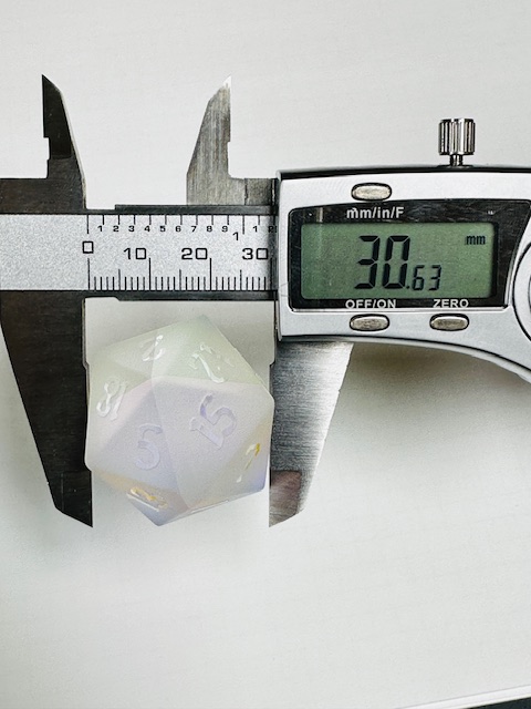 d20: (Face->Face) 30.63 mm (Point->Point) 37.0 mm
