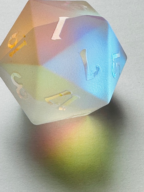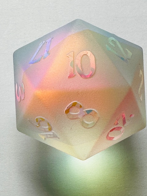 Get one of these frosted dichroic d20s, you will never get tired of looking at it’s amazing colors.