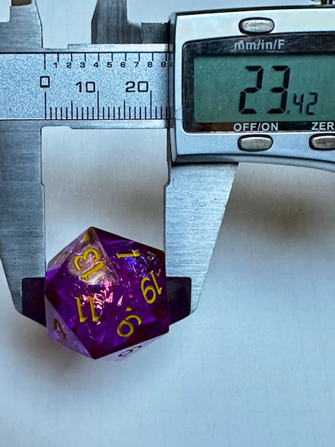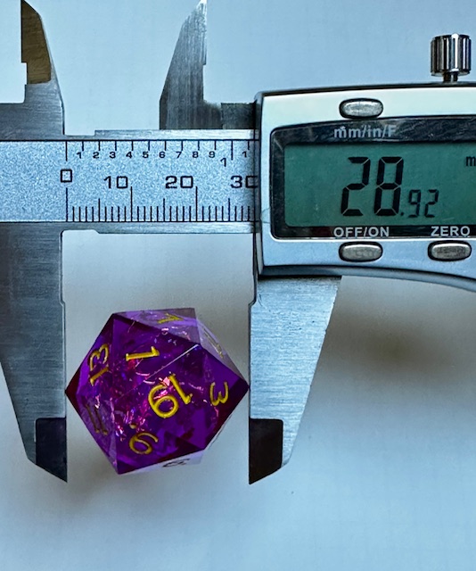d20: (Face->Face) 23.42mm (Point->Point) 28.92mm