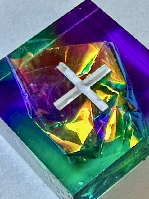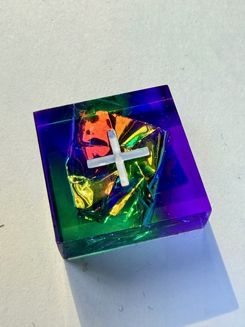 Material / color: Resin / green/purple with gold holofoil inside and white numbers